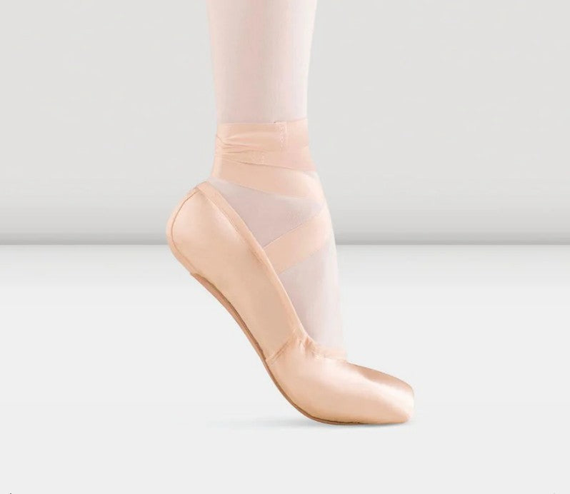 BLOCH first developed the Demi pointe shoe in the 1960s, as a transitional shoe to help train dancers for pointe work. A Demi pointe is more structured than soft ballet flats. The full leather sole and sturdy box provide resistance, helping to build the necessary strength in the foot and leg muscles required for pointe work. It is highly recommended to use demi-pointes for 6 months before going on to pointe.